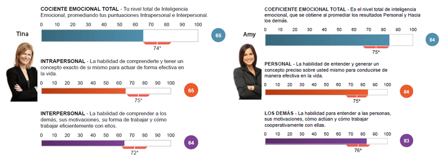 Pero aún hay más. Convendría conocer además, ese comportamiento agresivo por parte de Tina en momentos de Stress. Para ello vamos a pasar a Tina y a Amy la evaluación de Inteligencia emocional de TTI.